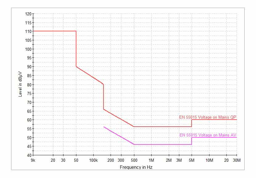 8.EN 55015規(guī)定了測量電燈和類似設備的射頻干擾的限值和方法。